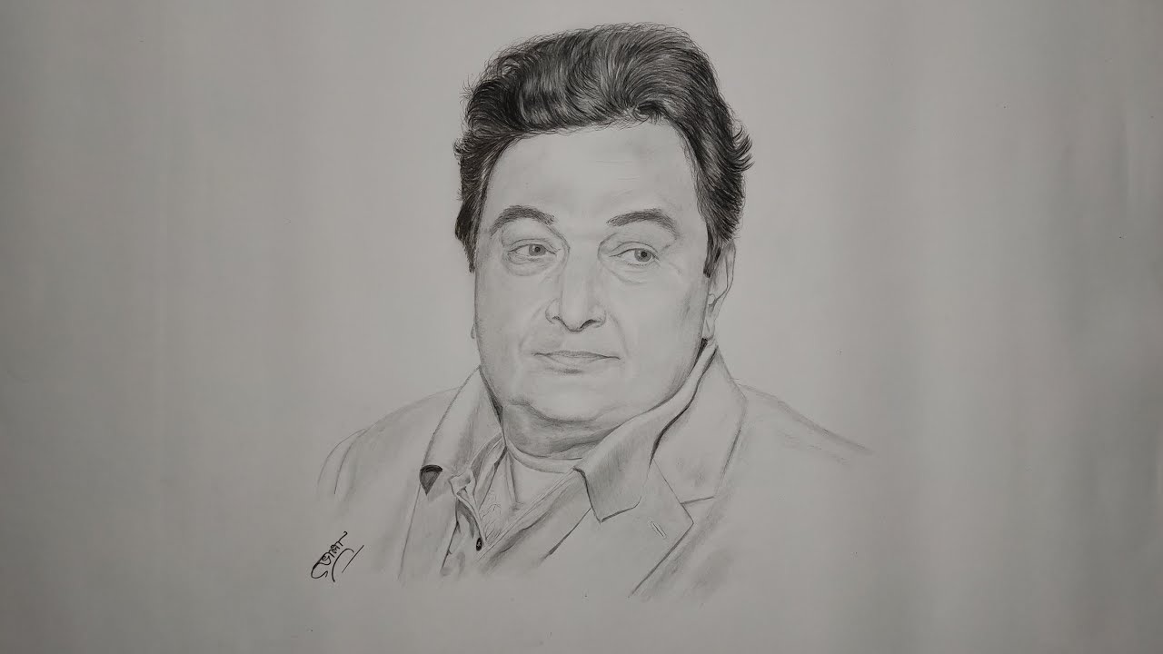 Pencil Sketch Drawing Of Bollywood Famous Actor Rishi Kapoor A