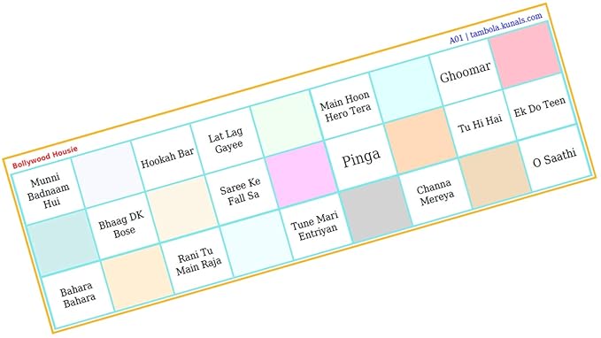 Bollywood housie ticket generator. The players mark off the numbers on their tickets as the numbers are called by a caller. Caller needs to announce one movie name at a time and strike it out on the list. Tambola is an engaging game played in various contries from generations.
