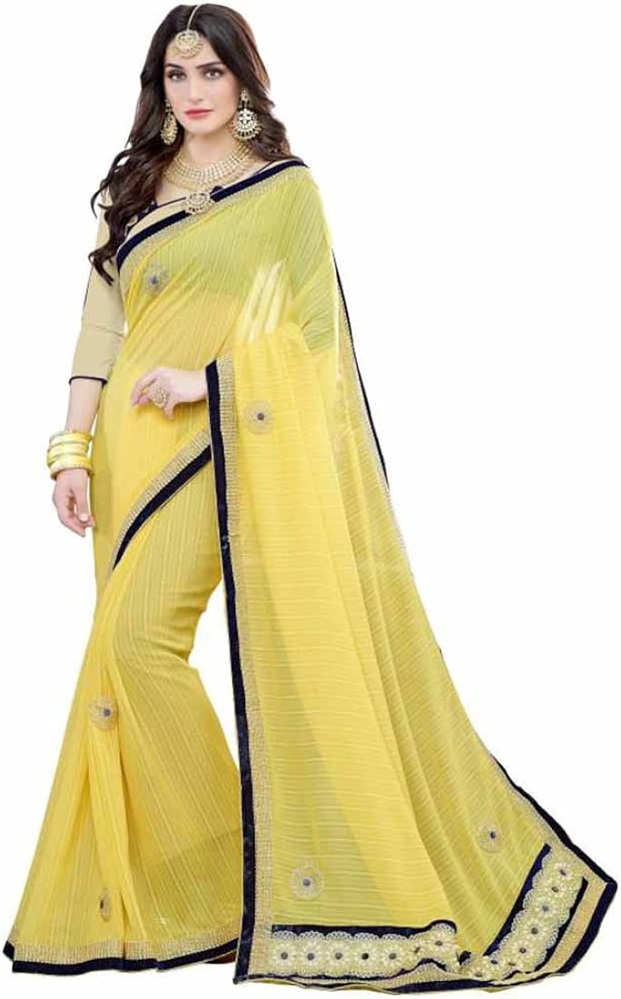 Amazon Com Embroidered Bollywood Georgette Silk Saree Yellow